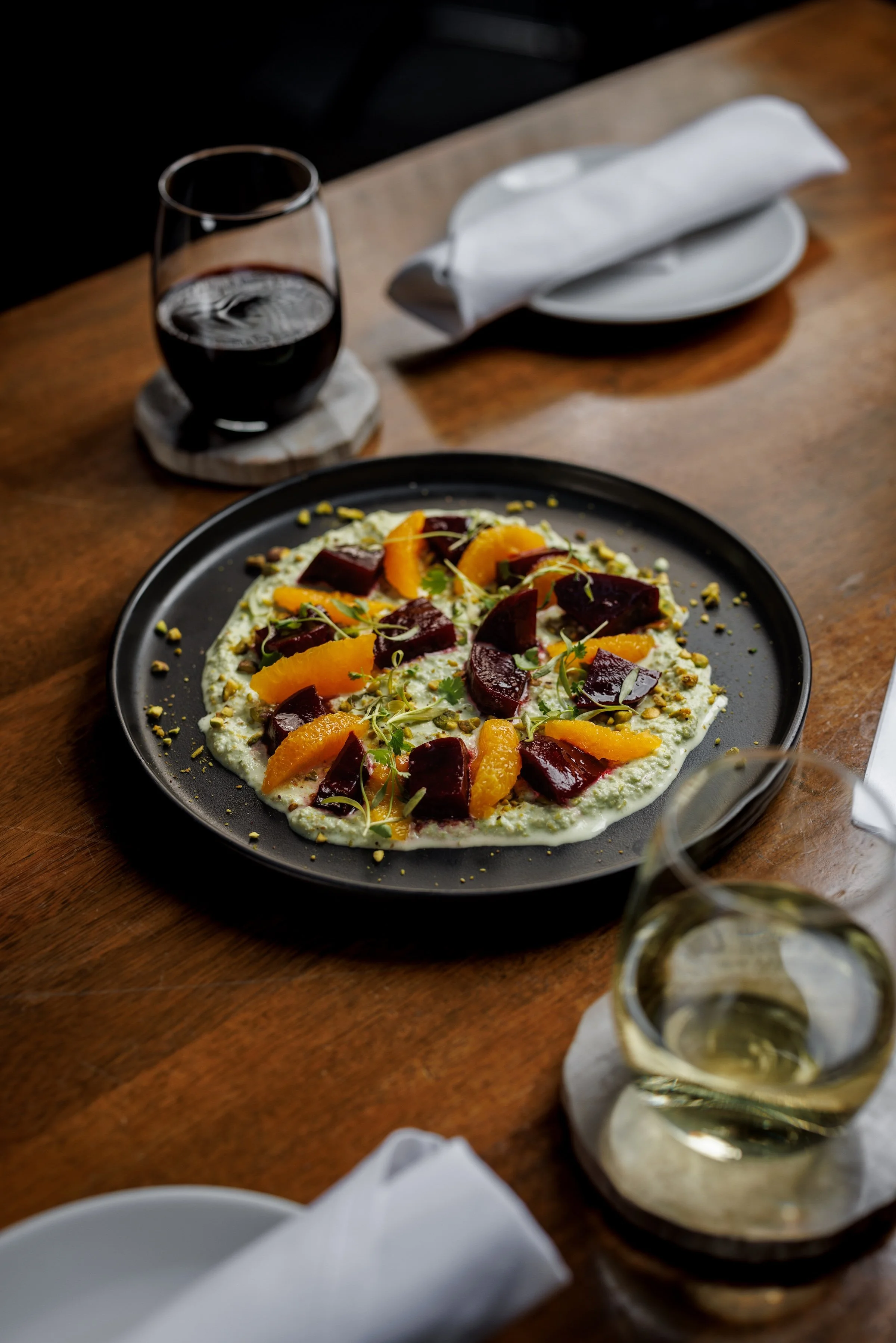 Served with 5 oz. of artisanal ramen noodles, heirloom carrots, red onions & cilantro. Add bone marrow- 13, soft-poached egg- 2, rice-3. Options on protein with various portions & prices.